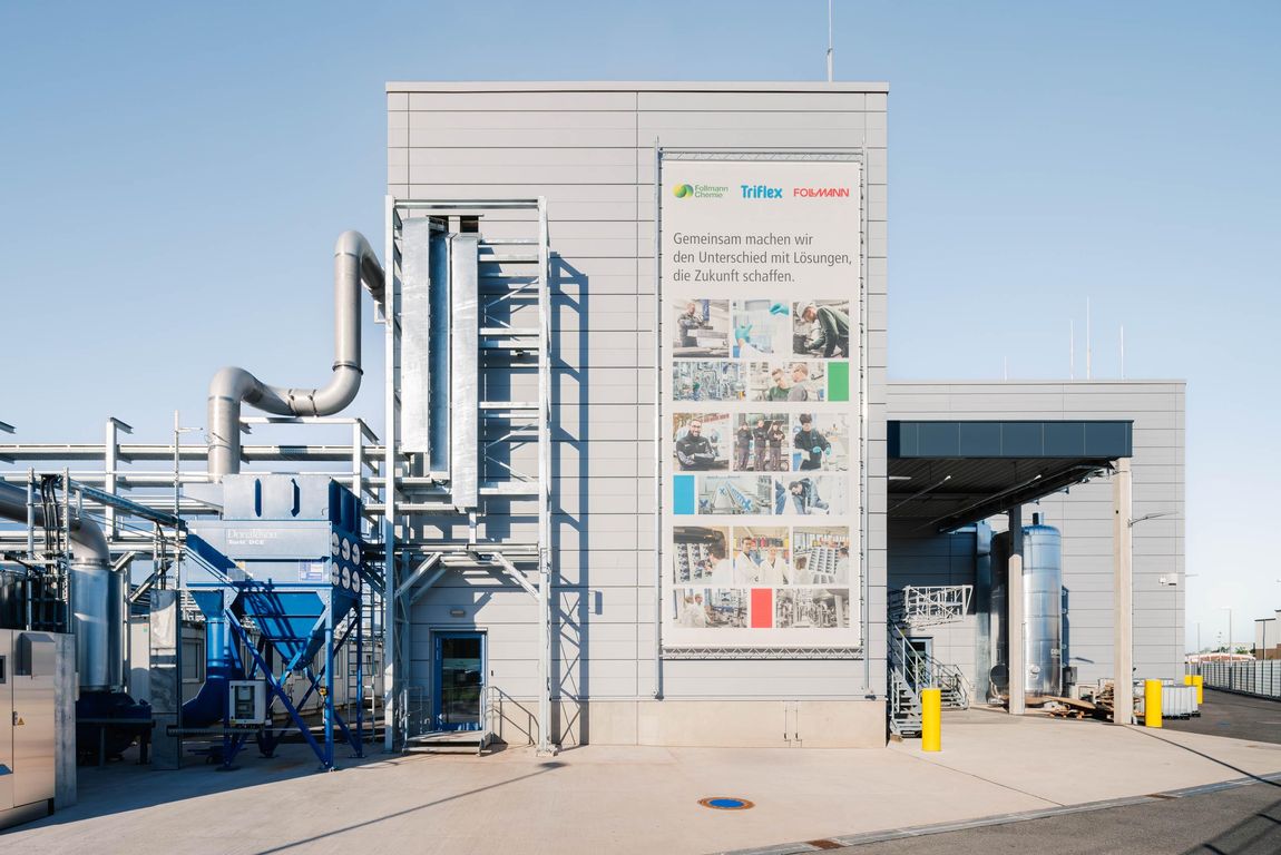 Der Neubau des PUR-Produktionsgebäudes bildet einen zentralen Baustein der Standortentwicklung von Follmann in Minden. Der dreigeschossige Neubau ist auf der letzten freien Fläche des Areals entstanden und wurde im September 2025 fertiggestellt.